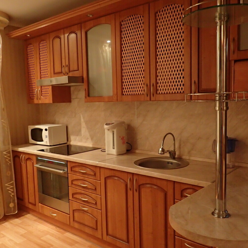 Для вашего удобства апартаменты оснащены мебелью и бытовой техникой.